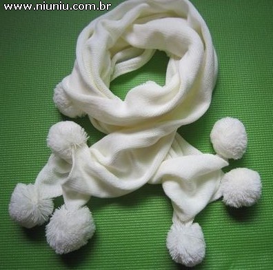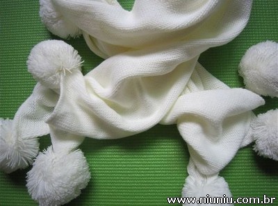 [FORA DE ESTOQUE] Cachecol Branco com Pom Pom